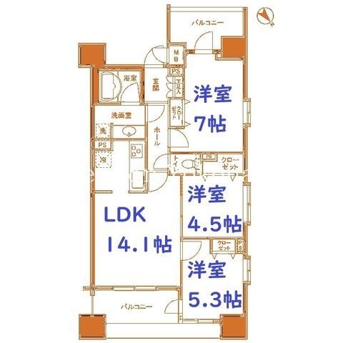 | 築年月 | 2006年2月 | 間取り | 3LDK( LDK14.1畳/洋室5.3畳/洋室4.5畳/洋室7畳 ) | 専有面積 | 65.64m2 |