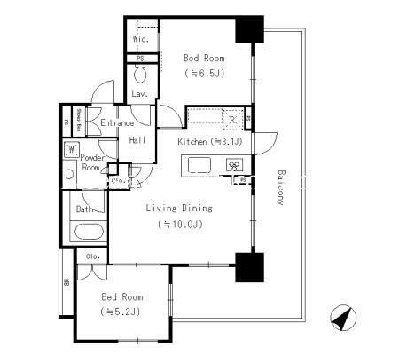 | 築年月 | 2013年2月 | 間取り | 2LDK( K3.1畳/LD10畳/洋室6.5畳/洋室5.2畳 ) | 専有面積 | 56.83m2 |