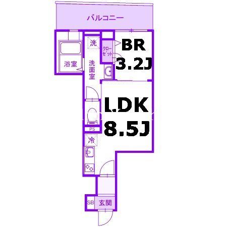 | 築年月 | 2021年1月 | 間取り | 1LDK( LDK8.5畳/洋室3.2畳 ) | 専有面積 | 32.39m2 |