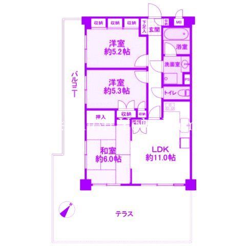 | 築年月 | 1992年1月 | 間取り | 3LDK( LDK11畳/洋室5.3畳/洋室5.2畳/和室6畳 ) | 専有面積 | 60.5m2 |