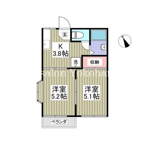 | 築年月 | 1991年6月 | 間取り | 2K( K3.8畳/洋室5.2畳/洋室5.1畳 ) | 専有面積 | 28.8m2 |