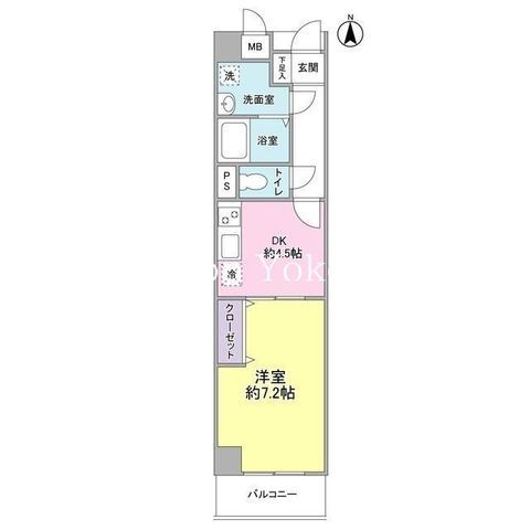 | 築年月 | 2002年9月 | 間取り | 1DK( DK4.5畳/洋室7.2畳 ) | 専有面積 | 30.95m2 |