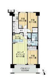 | 築年月 | 2012年2月 | 間取り | 3LDK( LDK13.5畳/洋室5畳/洋室7畳/洋室6.1畳 ) | 専有面積 | 80.63m2 |