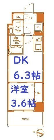 | 築年月 | 2020年7月 | 間取り | 1DK( DK6.3畳/洋室3.6畳 ) | 専有面積 | 25.11m2 |