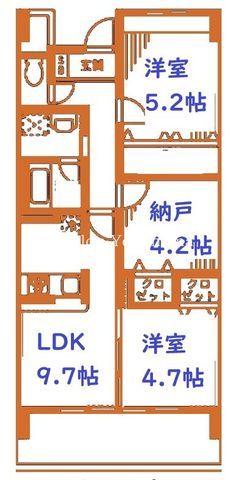| 築年月 | 2005年3月 | 間取り | 2SLDK( 洋室5.2畳/洋室4.7畳/LD6.7畳/S4.2畳 ) | 専有面積 | 59.38m2 |