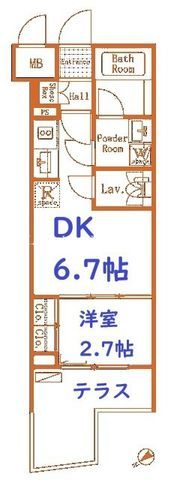 | 築年月 | 2023年1月 | 間取り | 1DK( DK6.7畳/洋室2.7畳 ) | 専有面積 | 25.33m2 |