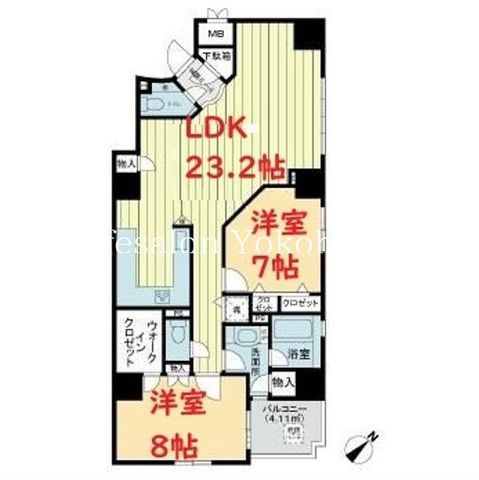 | 築年月 | 1999年7月 | 間取り | 2LDK( LDK23.2畳/洋室8畳/洋室7畳 ) | 専有面積 | 90.47m2 |
