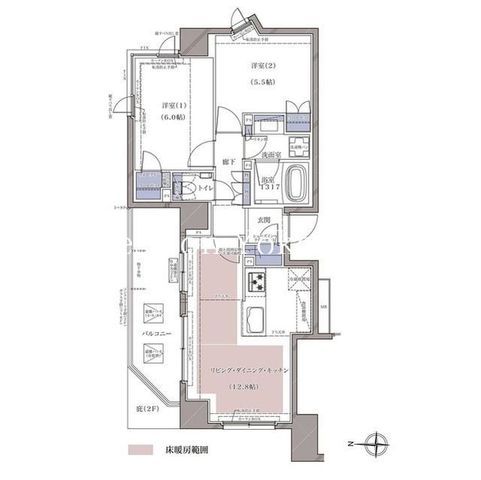 | 築年月 | 2020年5月 | 間取り | 2LDK( LDK12.8畳/洋室6畳/洋室5.5畳 ) | 専有面積 | 56.14m2 |