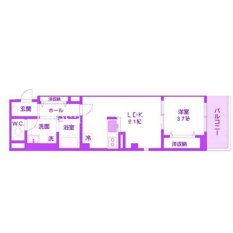 | 築年月 | 2015年9月 | 間取り | 1LDK( LDK9.1畳/洋室3.7畳 ) | 専有面積 | 35.88m2 |