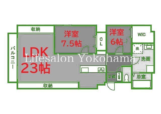 | 築年月 | 1989年1月 | 間取り | 2LDK( 洋室7.5畳/洋室6畳/LDK23畳 ) | 専有面積 | 82m2 |
