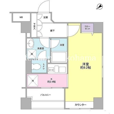 | 築年月 | 2005年12月 | 間取り | 1K( K2.4畳/洋室9.2畳 ) | 専有面積 | 30.91m2 |