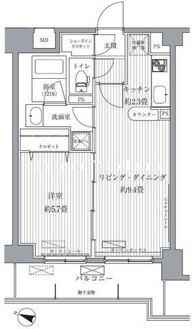 | 築年月 | 2009年5月 | 間取り | 1LDK( K2.3畳/LD9.4畳/洋室5.7畳 ) | 専有面積 | 40.76m2 |