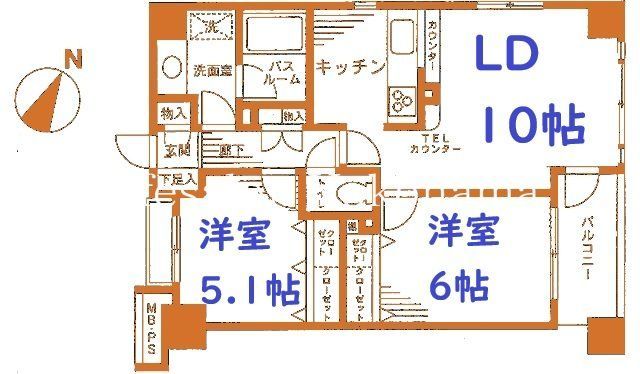 | 築年月 | 1998年3月 | 間取り | 2LDK( LD10畳/洋室6畳/洋室5.1畳 ) | 専有面積 | 54.95m2 |