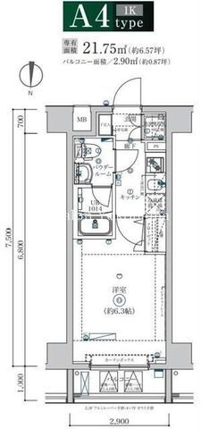 | 築年月 | 2022年10月 | 間取り | 1K( 洋室6.3畳 ) | 専有面積 | 21.75m2 |