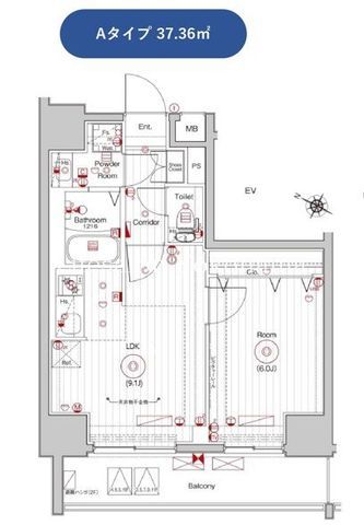 | 築年月 | 2024年11月 | 間取り | 1LDK( LDK9.1畳/洋室6畳 ) | 専有面積 | 37.36m2 |