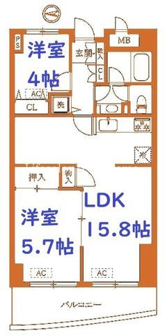 | 築年月 | 1997年7月 | 間取り | 2LDK( 洋室5.7畳/洋室4畳/LDK15.8畳 ) | 専有面積 | 55.12m2 |