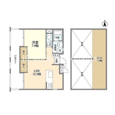 | 築年月 | 1989年4月 | 間取り | 1LDK( LDK12.2畳/洋室7.4畳 ) | 専有面積 | 46.7m2 |