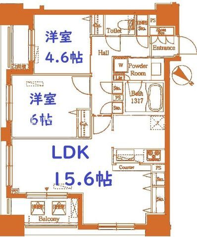 | 築年月 | 2007年2月 | 間取り | 2LDK( LDK15.6畳/洋室6畳/洋室4.6畳 ) | 専有面積 | 62.22m2 |