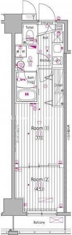 | 築年月 | 2014年12月 | 間取り | 2K( K2畳/洋室7.1畳/洋室4.5畳 ) | 専有面積 | 30.48m2 |