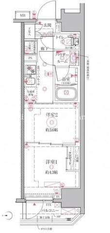 | 築年月 | 2024年10月 | 間取り | 2K( 洋室3.6畳/洋室4.3畳 ) | 専有面積 | 25.56m2 |